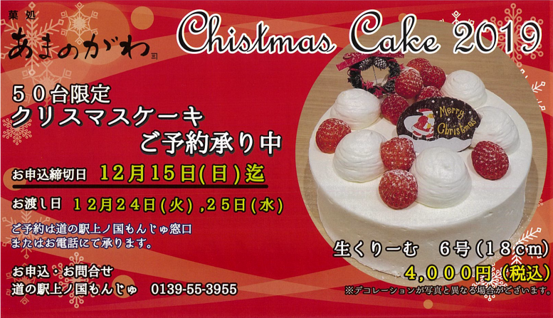 もんじゅ内の菓処あまのがわで、クリスマスケーキの予約販売を開始いたしました!